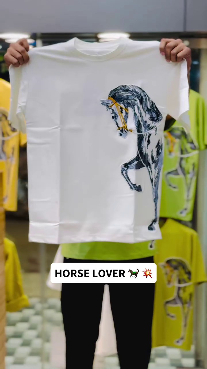 Animated Blue and White Horse Print Graphic T-Shirt for Men