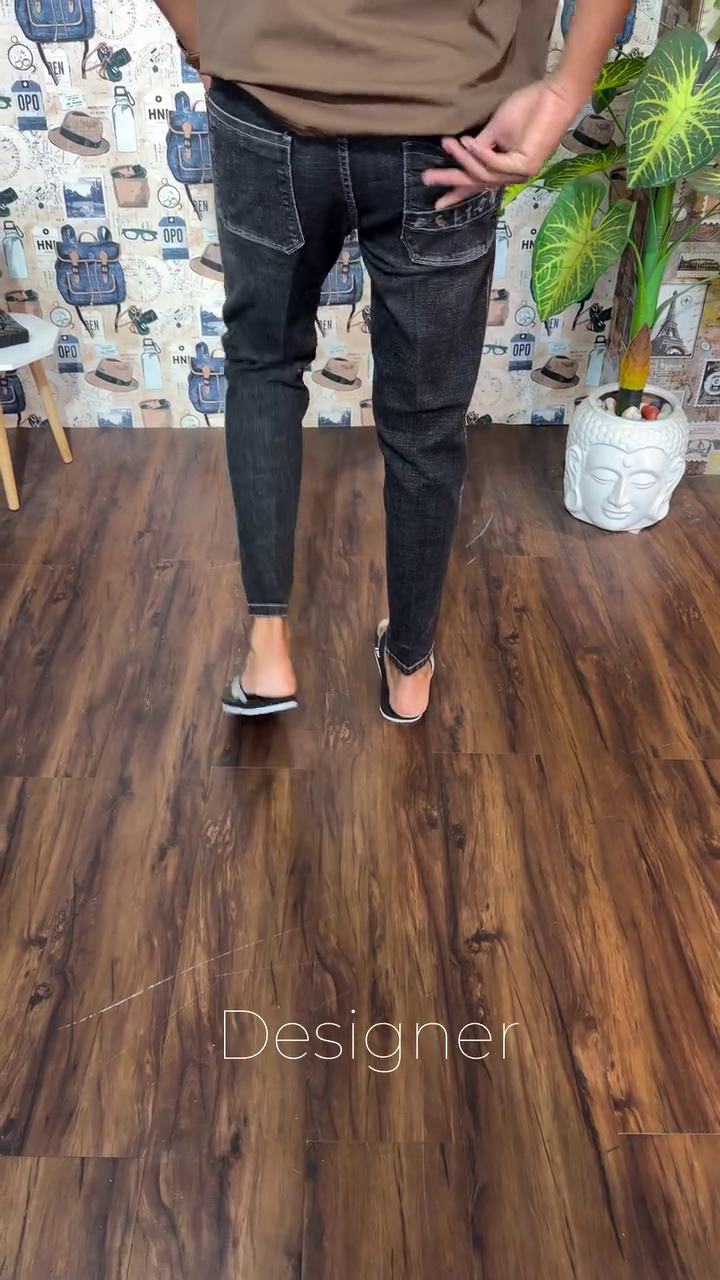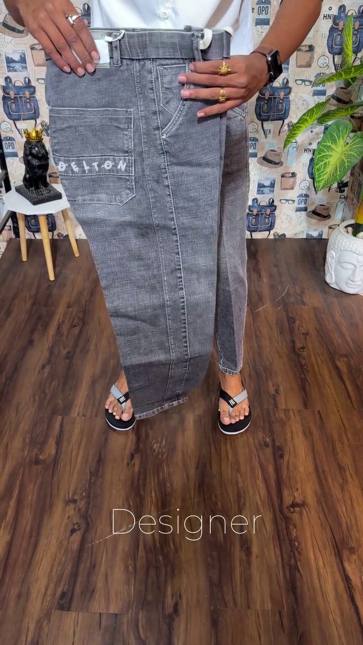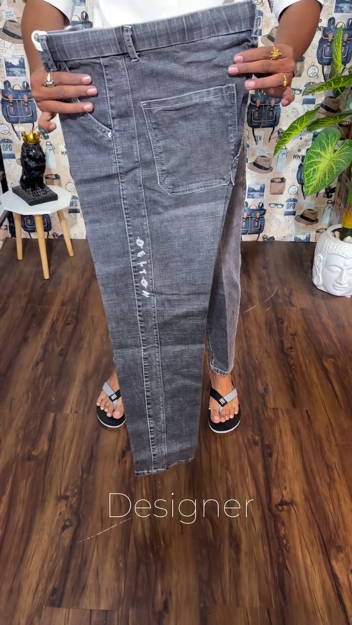 • Dark shade, heavy fade grey jeans