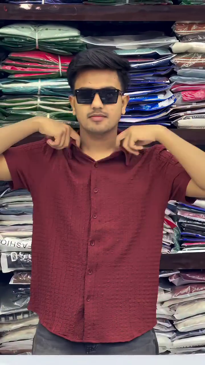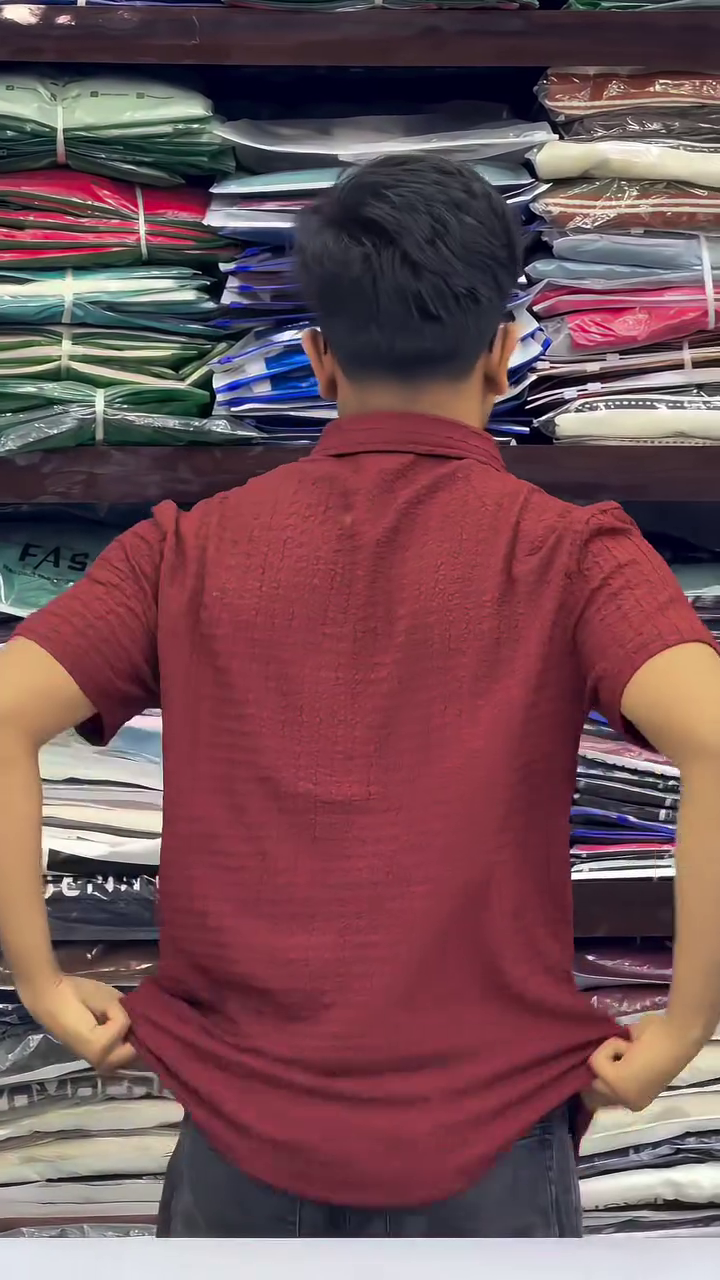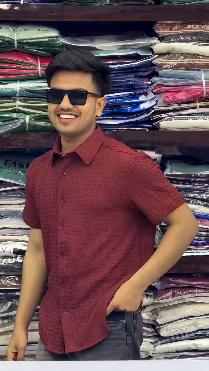 + Free ShippingMaroon self design textured casual shirt ,has a spread collar, button placket, short regular sleeves, curved hem